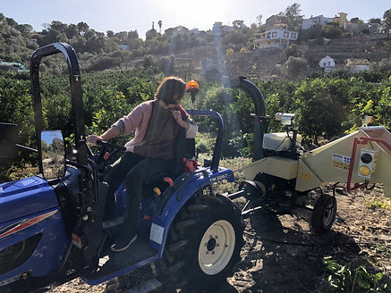 Hemos invertido en una biotrituradora, con los restos de la poda de formación que hicimos en junio y otra en octubre, los picamos y convertimos en pequeñas astillas. Estas astillas caen al suelo y cuando permanecen un tiempo hacen que se desarrollen microorganismos aportando nutrientes a la tierra, manteniendo la humedad, evitando la desecación de la superficie del suelo... Muy importante en estos tiempos, más adelante en otro post hablaremos sobre ello...